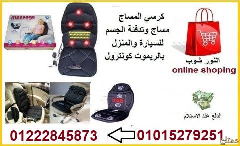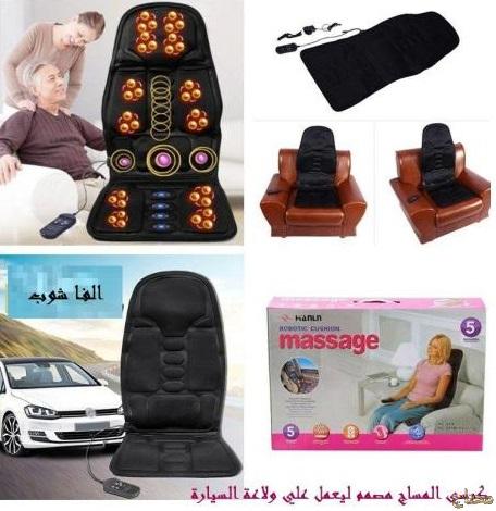 الكرسي مزود بعدد 5 مواتير لعمل تدليك كامل للظهر والأكتاف وبه 4 برامج مساج مختلفة و3 مستويات من السرعة لضمان تدليك كامل لكل عضلات الجسم ومزود بسخان لتدفئة الجسم أثناء الشتاء. كرسي المساج مصمم ليعمل علي ولاعة السيارة أثناء القيادة أو التشغيل بالمكتب أو المنزل علي الفيشة العادية Massage Chair