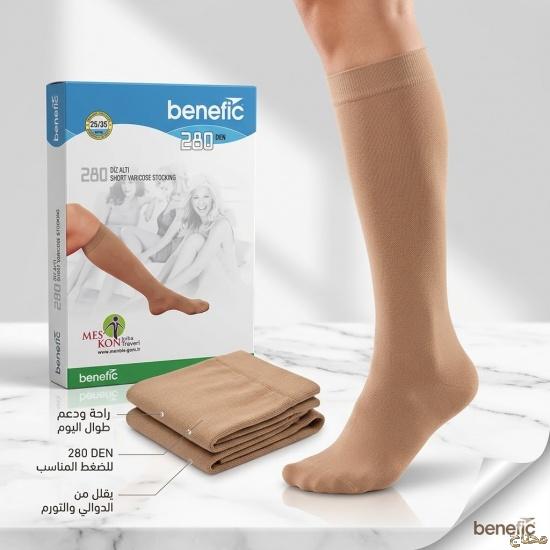 شراب Benefic 280 DEN مش مجرد شراب عادي، ده رفيقك اليومي لراحة تدوم طويلاً وصحة أفضل لرجليكي. مصمم خصيصاً بمواصفات طبية عالمية عشان يوفر لك الدعم اللي محتاجاه بكل أناقة.