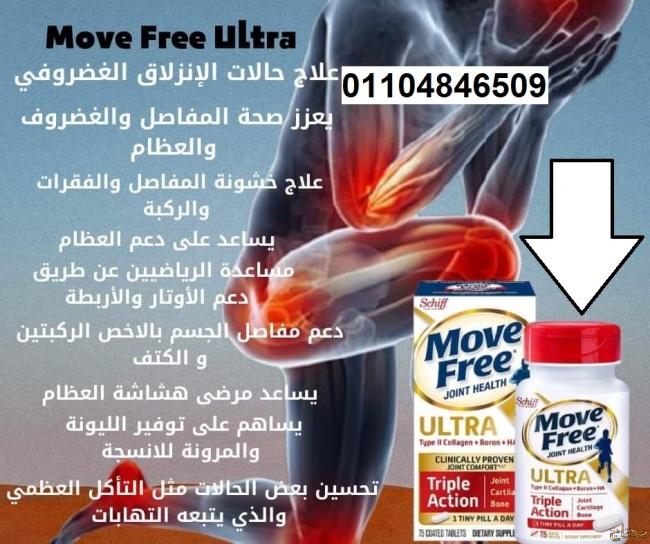 تم تصميم دواء موف فري الترا ليساعدك في حالات خشونة المفاصل التي تسبب لك العديد من الآلام مثل آلام خشونة الركبة وخشونة فقرات الظهر، بالإضافة إلى أنه مناسب في حالات الانزلاق الغضروفي، حيث أنه يقوم بدعم الأربطة والأوتار، وتحتوي كبسولات move free ultra على المواد التي تعزز علاج الحالات المرضية التي قد تصيب العظام لا تسكينها فقط.