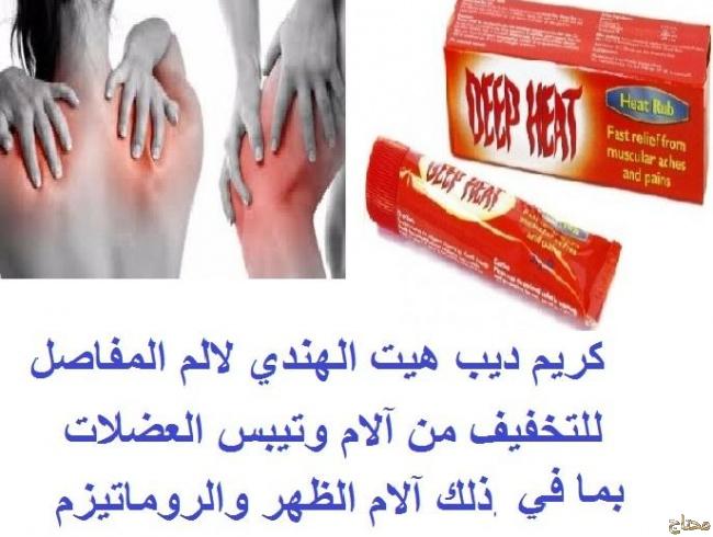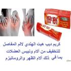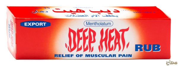 لتخفيف الالم بالعلاج الحراري. يوصى باستخدام هذا العلاج للتخفيف من آلام وتيبس العضلات بما في ذلك آلام الظهر والروماتيزم. يمكن استخدامه قبل التمرين أو بعده. كيفية الإستخدام استخدم هذا العلاج على الجلد فقط، يجب على البالغين والأطفال فوق 5 سنوات الدهان باستخدام ديب هيت رب على المنطقة المصابة. قم بالاستخدام على الجلد 2 إلى 3 مرات يوميًا واغسل اليدين مباشرة بعد الاستخدام. اقرأ الملصق دائمًا. التحذيرات والإحتياطات: للاستخدام الخارجي فقط المكونات المنثول 5.91٪ (نسبة وزن لوزن)، زيت الأوكالبتوس 1.97٪ (نسبة وزن لوزن)، ساليسيلات الميثيل 12.80٪ (نسبة وزن لوزن)، زيت التربنتين 1.47٪ (نسبة وزن لوزن) اهلا وسهلا بعميلنا الكريم يمكنكم التواصل معنا علي الارقام التالية من داخل مصر 01021826238 01280343761 01144072233 واتس اب 01021826238 من خارج مصر 00201280343761
